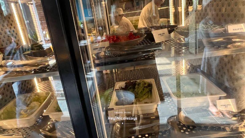 ▼ 冷盤方面,還有沙律、煙三文魚、干貝唇、貢菜、牛蒡絲等等。雪櫃的設計很不方便,趟門設計,要邊打開雪櫃門,又要夾食物,又要拿著餐碟,令到取餐時有點狼狽。