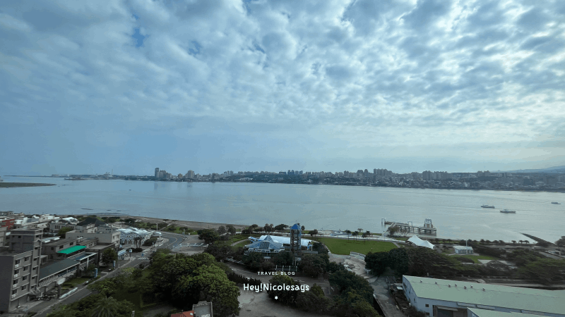 ▼ 一進房間就被眼前180度的淡水河景色吸引!落地大玻璃,再加上一望無際的天空,超級無敵美!