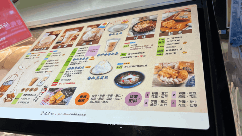 ▼ 于記杏仁好厲害,將簡單的杏仁變化出不同的甜品。種類款式很多,熱賣商品分別有杏仁豆腐、古早味杏仁茶和杏仁豆腐冰!
