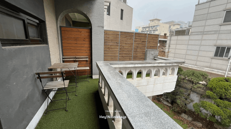 ▼ 我們最喜愛的位置還有房間的L型露台!雖然這幾天晚上天氣太冷,所以放棄在戶外吃宵夜炸雞!但每天早上都會在這裡看街景和呼吸一下早上的新鮮空氣,大愛!