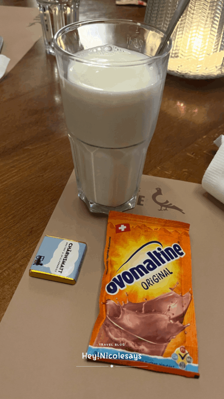 ▼飲品方面,無酒精的飲品選擇不多,最後點了凍阿華田,原來只是鮮牛奶和自己加阿華田粉,上桌時看到這樣的presentation有點驚訝,但同時也覺得好好笑。雖然也挺好喝的,但價值CHF5.5的飲品是這樣呈現上桌,好像有點對不起這個價錢呢。