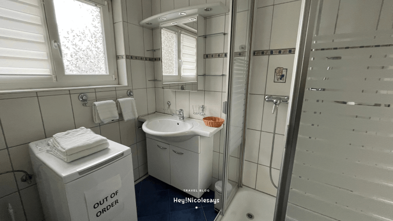 ▼ 洗手間整體乾淨整潔,使用起來沒有問題。不過要留意的是,這裡並沒有提供沐浴露和洗髮露,需要自行準備。洗手間內的洗衣機無法使用,如有需要洗衣服,必須使用地下的公共洗衣房。這一點在 Airbnb 訂房時已有明確標註,所以我們並不覺得意外。