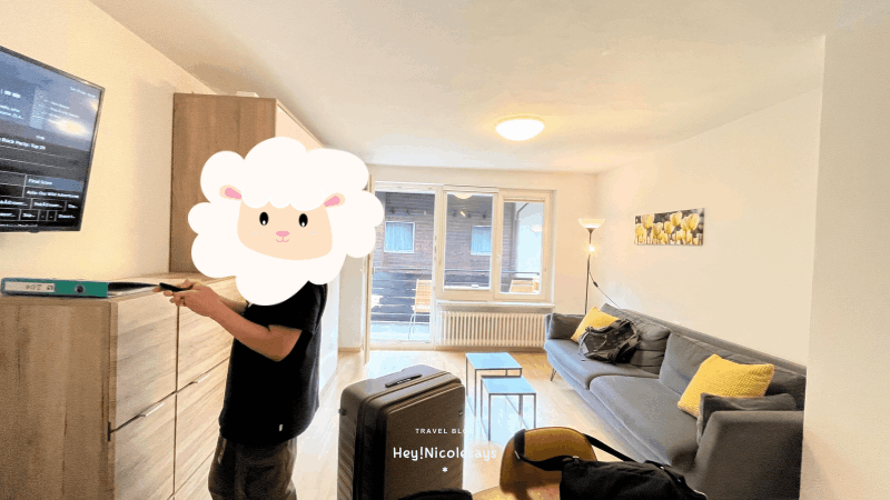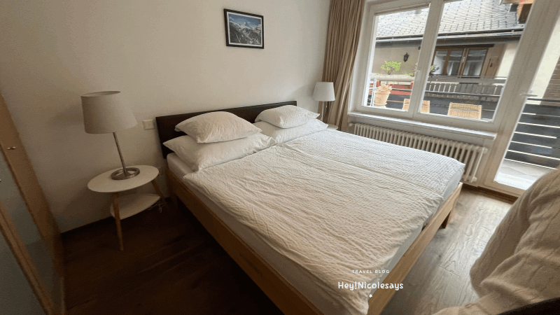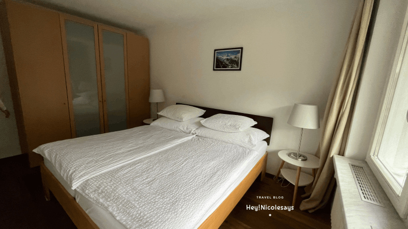 第一次到策馬特,我們花了不少心思尋找理想的住宿,最終選擇了「Holliday Apartment Theodul Zermatt」作為兩晚的落腳處。原本我訂了一間非常喜歡的「登特布蘭奇公寓」,但經過仔細考慮後還是決定取消。雖然那間公寓擁有絕美山景,但價格較高、沒有電梯,而且房間位於3樓,為了不讓大家搬運行李太過辛苦,最終我們選擇了更貼近需求的住宿。如果搬行李不是考量,也是很推薦「登特布蘭奇公寓」喔!