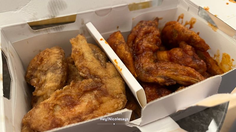 ▼ 每次吃橋村炸雞都是點半半口味(반반),一半原味 、一半辣味,部位則是全雞或只要雞鎚。原味炸雞有一種很香的蒜香味,惹味得令人欲罷不能!至於辣味更加惹味,不過口味偏辣,但真的是令人一試難忘的味道!!