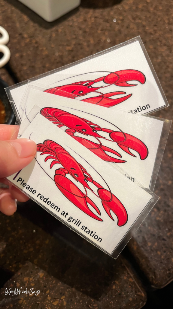每人有一張龍蝦劵,可以在用餐的任何時餐內到燒烤區取半隻烤龍蝦!