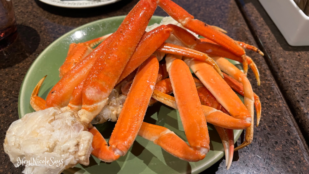 長腳蟹的蟹肉都很飽滿!蟹肉鮮甜!我最喜歡的凍熟蝦也是爽口彈牙,光是續盤也續了很多次了!
