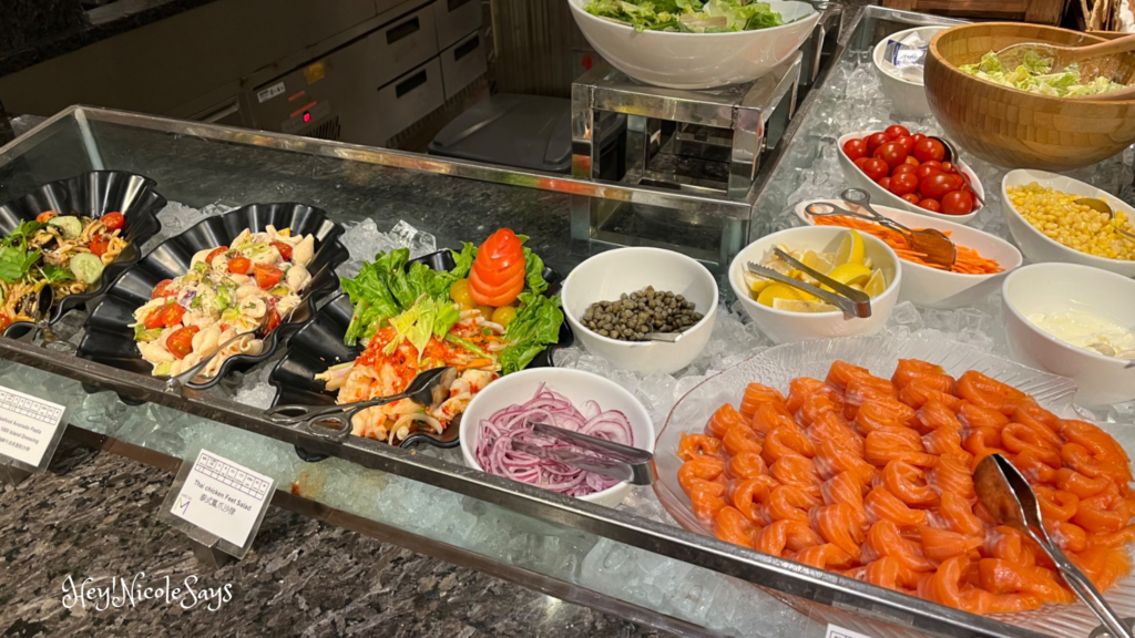 沙律冷盤區的選擇也不少!有泰式鳳爪沙律、海鮮牛油果意粉沙律、煙三文魚!