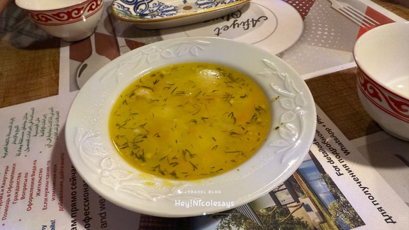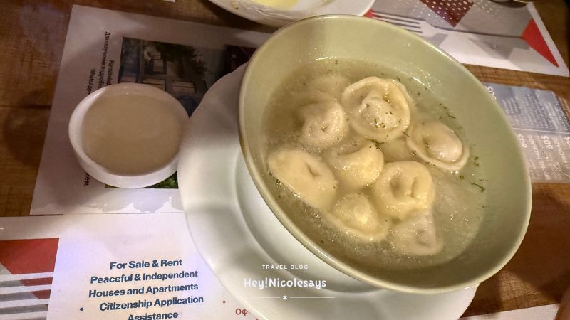 ▼ 牛肉餃子湯。餃子的調味是搭配酸奶,很有趣,雖然味道不難吃,但餃子的皮很厚,這道菜就比較不推薦了。