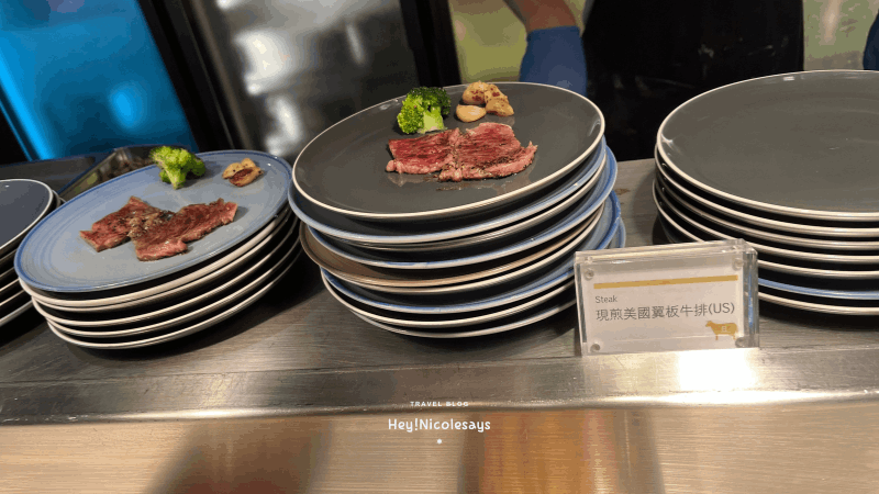 ▼ 自助餐必有的即切牛排,可惜太靭了。