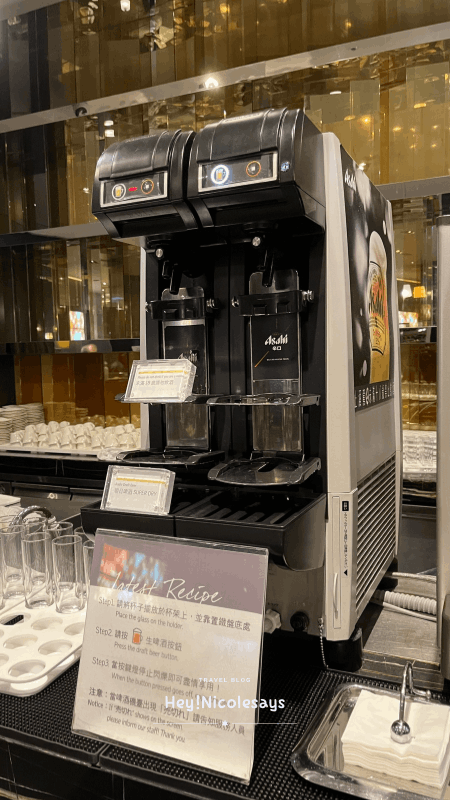▼ 這一台自動啤酒機很受客人歡迎,啤酒是Asahi是日式生啤酒!第一次在自助餐看到有啤酒喝到飽供應!也溫馨提醒一下,喝了酒不要駕駛!