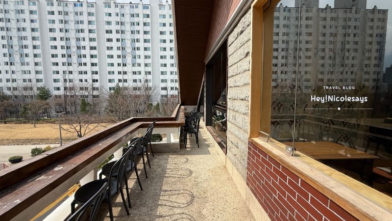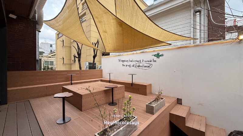 ▼ 二樓的露天座位區側面對著延南洞主街,視野開闊,氛圍很舒適。
