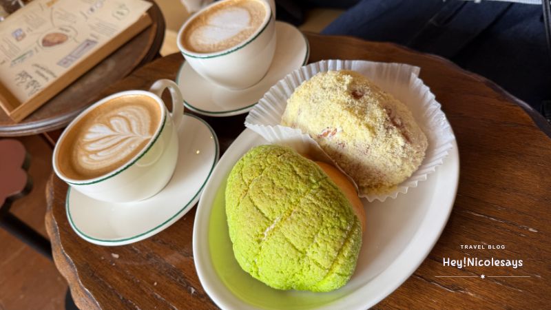 ▼ 早餐簡單點了兩款麵包和兩杯熱Vanilla Coffee Latte,分別選了哈蜜瓜包和鮮奶油鹽麵包。麵包沒有加熱,選好後職員只是將它放在碟上便可以拿到用餐區享用。麵包冷冷的,但味道和口感不錯,看賣相以為會很甜的麵包,卻意外的不會過甜,也算是合格。