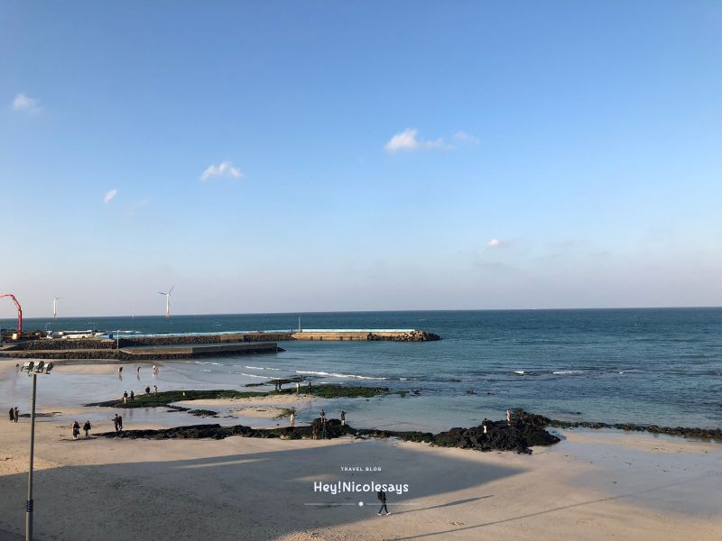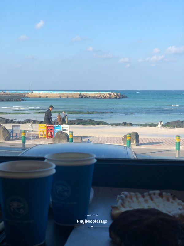 ▼ 到訪當日的濟州島只有10度左右,中午過後海邊更冷!所以到達海水浴場後的第一站,我們就走進了這家擁有無敵海景的咖啡廳Morebi Cafe!