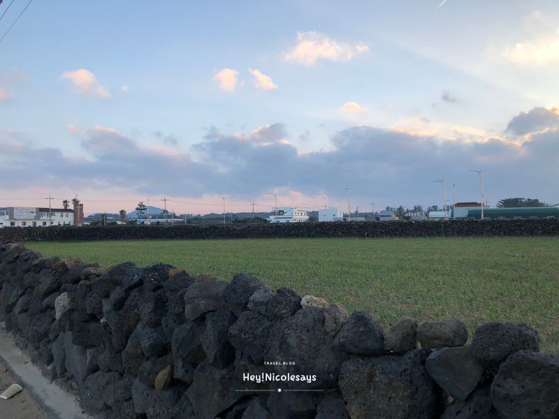▼ 離門月汀里海水浴場去搭車前往濟州市區,沿路看到的菜田加上夕陽的襯托~美到不行!!