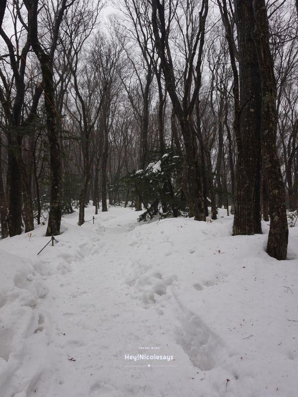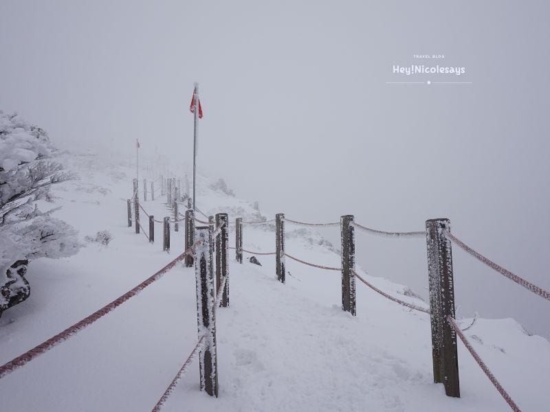 ▼ 但因為積雪很厚,原本在左右兩邊引路的繩都被雪埋藏了一大半!所以記得除了欣賞風景外,都要走得很小心,不能偏離行人路。
