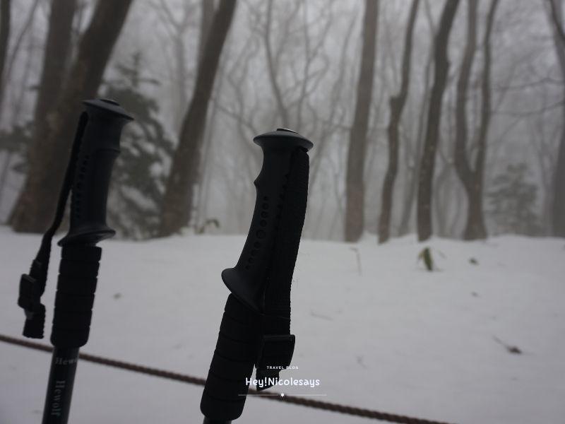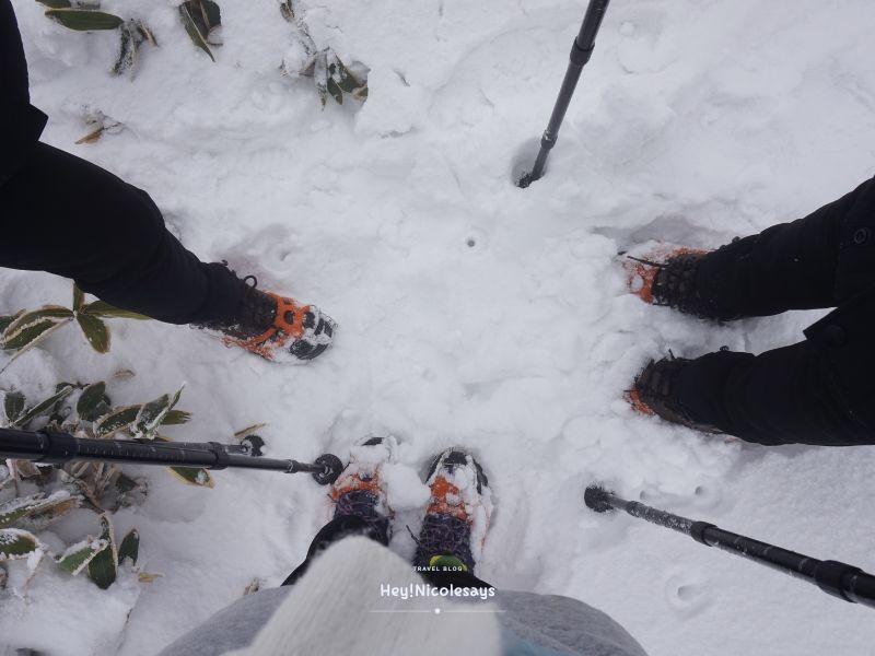 ▼ 愈接近山頂的位置,積雪仍然非常厚,如果沒有行山杖,下山時也是寸步難行。