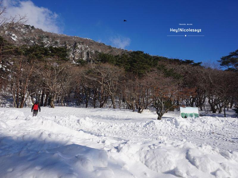 享受完暖乎乎的午餐,休息過後是時候離開威勢岳避難所,下山的旅程正式開始!!在休息站跟一些韓國人聊天,大家都說御里牧雖然比較容易,但沒有靈室漂亮,所以建議我們不要沿路折返下山,走靈室試一下!!
