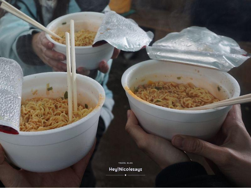 ▼ 休息站很簡單,只有幾張長椅、小小的小賣店和提供暖氣。我們終於可以吃到這碗全世界最好吃的杯麵。雖然只是一碗很普通的杯麵,但在辛苦過後,吃到暖呼呼的杯麵,真的只有滿滿的幸福和感動,也明白到為什麼大家會這樣形容它了!