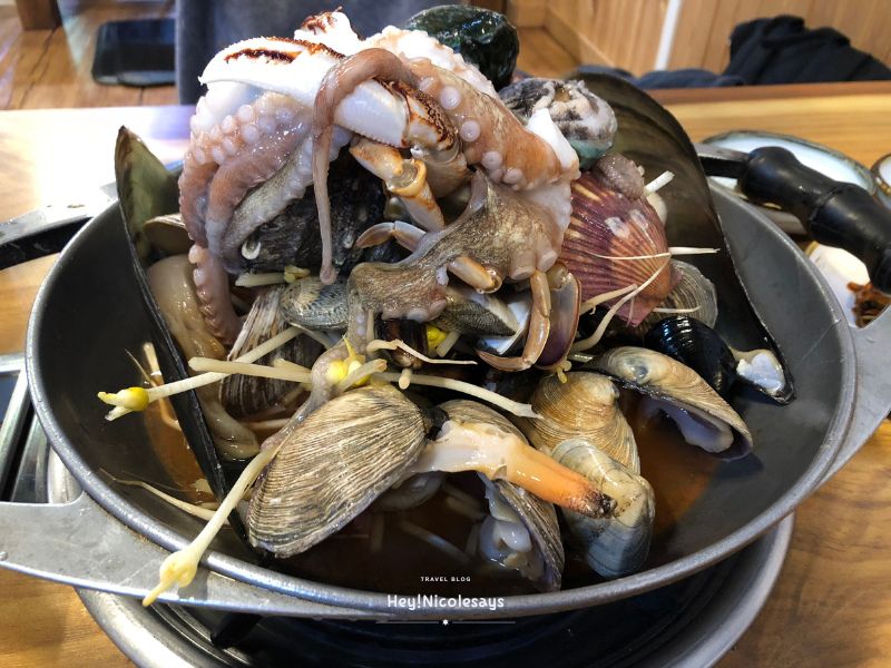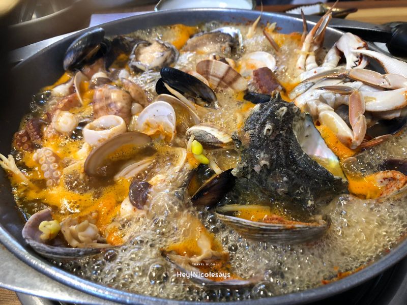 來到鄰近海邊得濟州島,不能不吃必定新鮮的海鮮了!這家鄰近蓮洞商圈的三姓穴海鮮鍋(살아있는삼성혈해물탕),有我喜歡的鮑魚八爪魚各種貝殼類蝦蟹等等等😍CP值超高的!