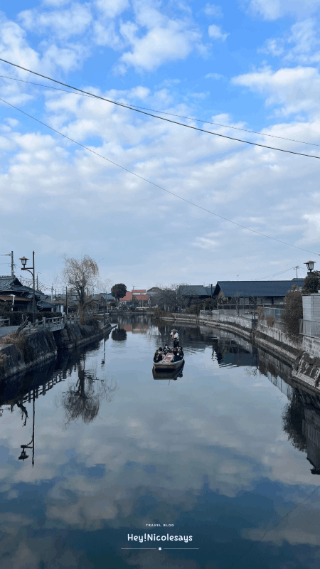 「觀光遊船」是不少人來柳川的重點行程,在「西鐵柳川站」後,步行約7分鐘或乘搭接駁巴士,就可以到三柱神社旁邊的「松月乘船碼頭」遊船泛舟,一路直達終點「沖之端」/「御花下船碼頭」,遊船之旅約70分鐘。