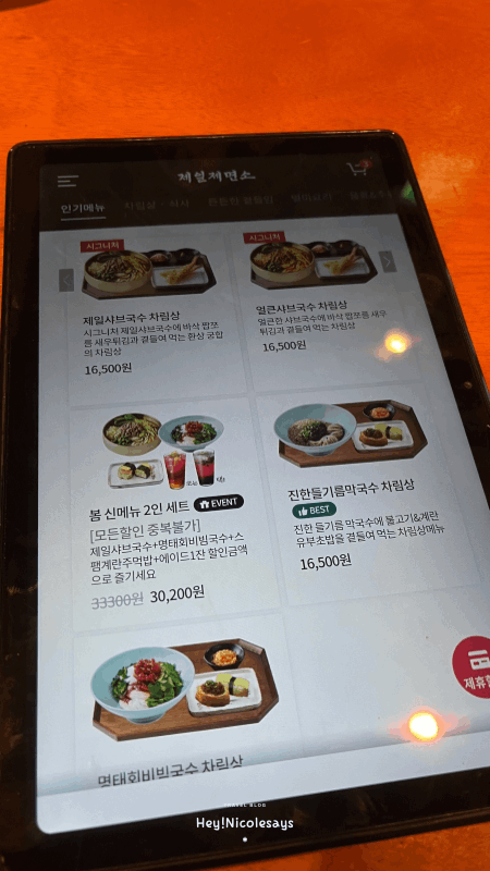 ▼ 每張枱都有一部平板電腦自助下單,有韓英的選擇,完全不用擔心語言不通的問題。還有一些特別的2人餐、1人餐和飲品是菜單上沒有的可以選擇。