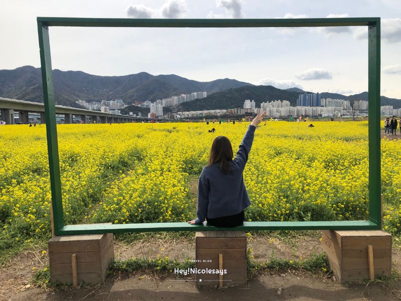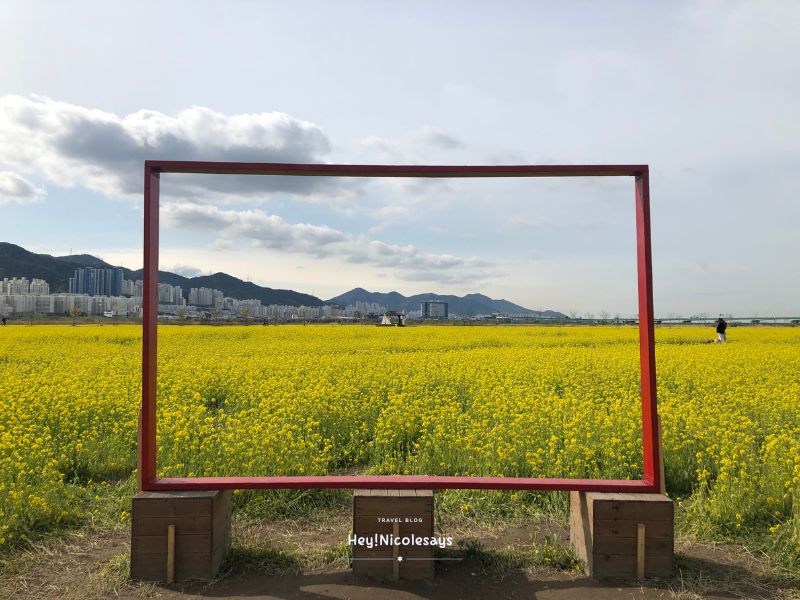 釜山景點|釜山洛東江油菜花慶典|一整片金黃色的油菜花田|釜山4月限定必去!
