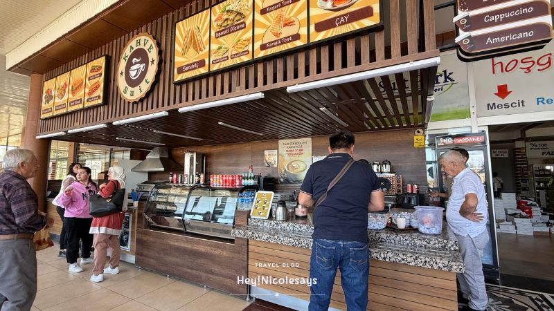 ▼ 巴士開了大概20分鐘左右會去到一個休息站,休息站規模也不小,有小食亭、雜貨、洗手間等等,不少等待上車的土耳其人也會在餐廳買杯土耳其茶喝慢慢等。