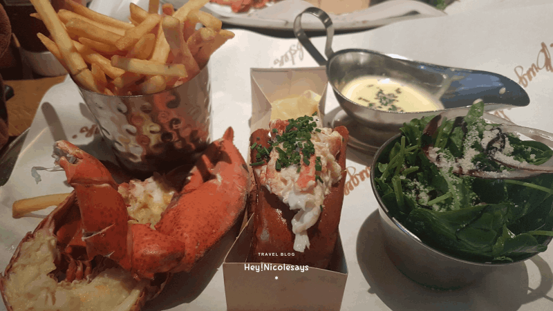 我們2人分別點了Steamed Classic Whole Lobster蒸龍蝦餐和Lobster Roll龍蝦三明治餐!問了店員蒸/烤龍蝦有什麼分別,她說覺得蒸龍蝦較好吃,可以吃到龍蝦的原汁原味,反之烤龍蝦就會乾身一點。