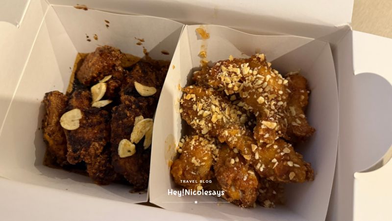 ▼ 這次我們選了最經典的半半炸雞組合,一次嚐到兩種人氣口味!一邊是招牌的黑蒜口味(블랙알리오,Black Aglio),濃郁的蒜香中透著黑蒜的獨特甘甜,另一邊則是經典的蒜香炸雞(Mad Garlic Chicken),滿滿的蒜片搭配酥脆外皮,香氣十足!